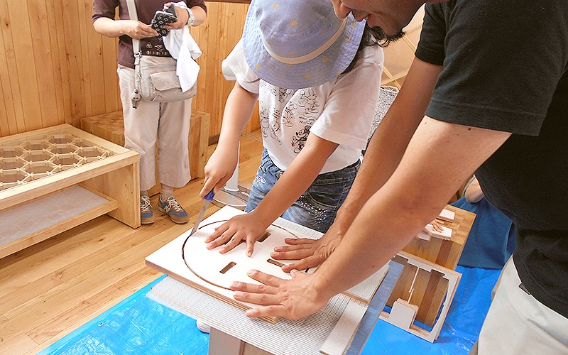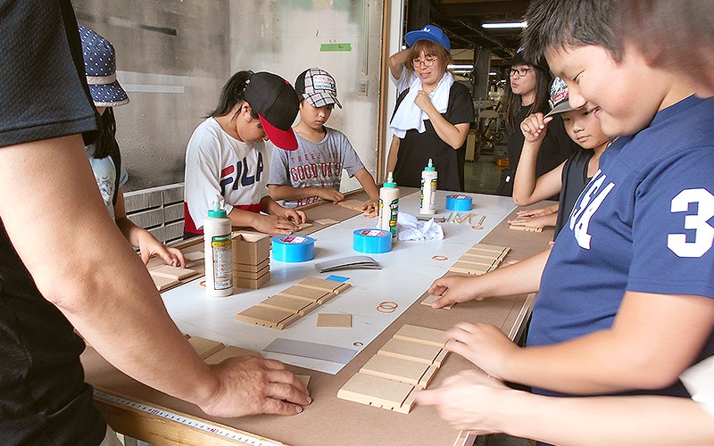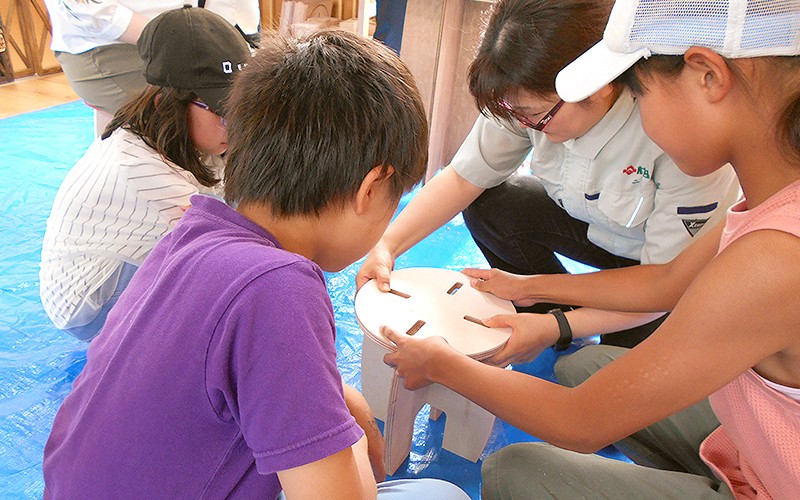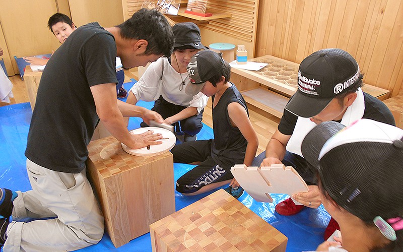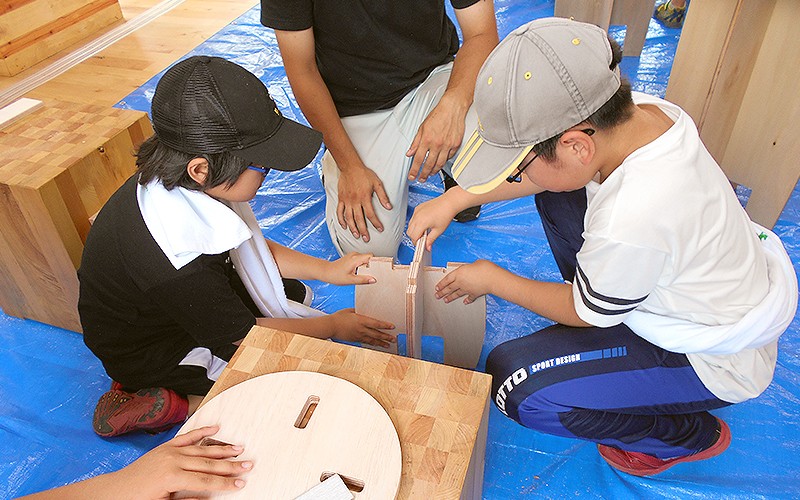 スツールでは「切る・仕上げる・調整する」と自分の手で少しずつ形になっていく工程を体験でき、完成したスツールに腰をかけた子は皆嬉しそうに笑ってくれたのが印象的でした。