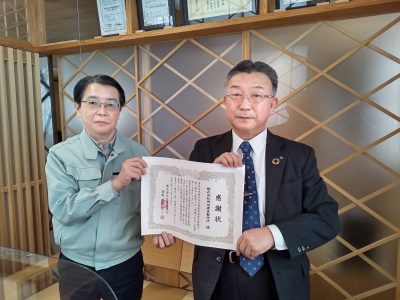 北海道銀行 疋田一晶執行役員より公益財団法人 北海道環境財団への寄付に対する感謝状を頂きました。