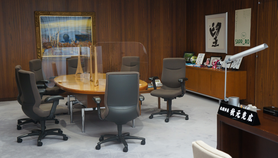 ▲秋元克広札幌市長室で実際に使用されているpateco 市長応接室にも設置して頂きました。 『ウィズコロナでも笑顔を!』をモチーフに、⾓がなくほっこりとする丸みを帯びたデザインが特徴のpateco。 北海道緊急事態宣言が下されている中で、少しでも世のお役に立てたらと思うばかりです。 こちらの商品のご購入は、下記PDFをメール・ファックス・郵送、いずれかの方法にてお送り下さい。 ...